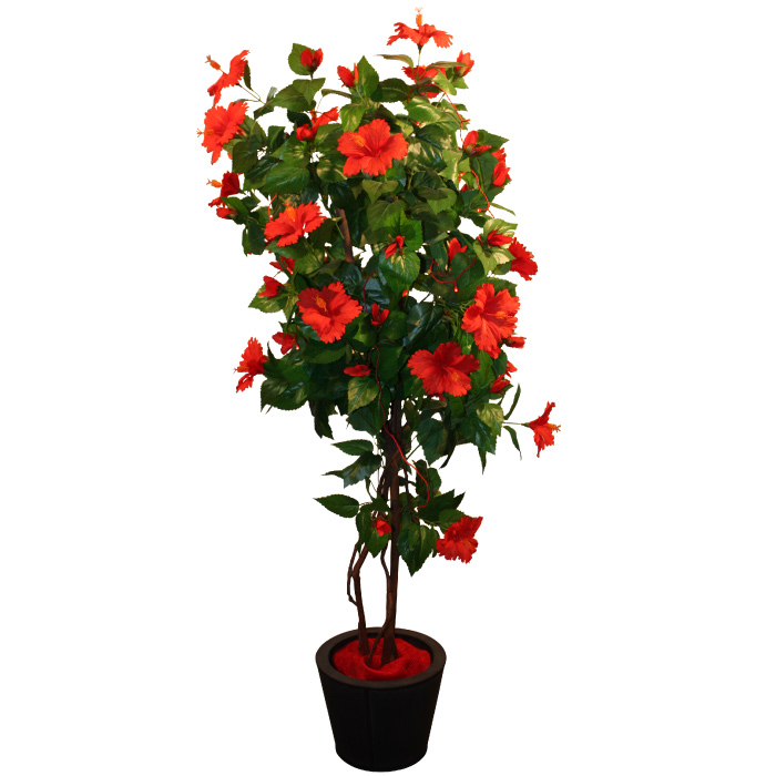 Plantes artificielles aux fleurs rouges agrémentées de petites lumières rouges : 1.70m.
